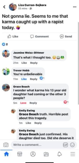 “Not gonna lie. Seems to me that karma caught up a rapist today.”