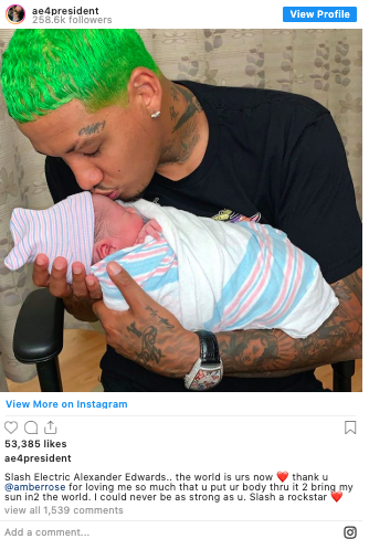 Amber Rose and her boyfriend Alexander “AE” Edwards, welcomed Slash back in October.
