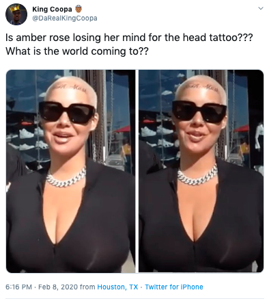Me looking at Amber Rose forehead tryna read wtf that tattoo says while simultaneously praying it’s magic marker #AmberRose pic.twitter.com/lWo0E4RIdD
