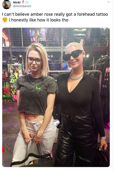 I checked to see why amber rose was trending only to find out she got a damn face or forehead tattoo pic.twitter.com/wBAFrenNPj
