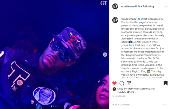 Yesterday, (2/16/20) T.I. posted this message on Instagram: