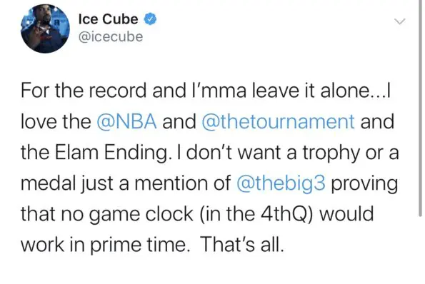 Cube’s Big3 plays all of matches without a timer. Whoever reaches 50 points first, wins. In light of this, Cube took to Twitter explaining why he believes The Big3 should be credited for the success of the all-star game.