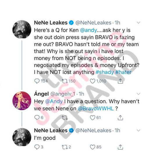 “But I don’t think she’s being cut out of episodes because I think that everything that shot with NeNe is in the show. We’re not cutting anything out… Everything that we shot… There’s nothing that’s been left out.”