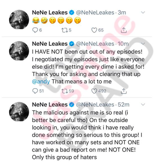 NeNe Leakes later explained that she negotiated her appearances like the rest of her cast, but suggested that she was still being treated maliciously. She wrote,