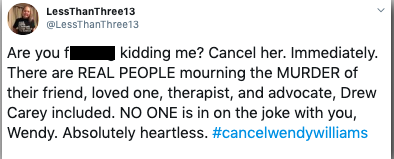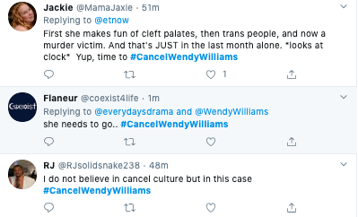 And Twitter birthed the hashtag #CancelWendyWilliams because of it