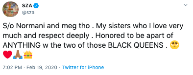 While Megan Thee Stallion and Normani proudly posted the cover to their respect IG pages, Sza suggested she wasn’t happy with the outcome as she tweeted Wednesday (Feb. 19),