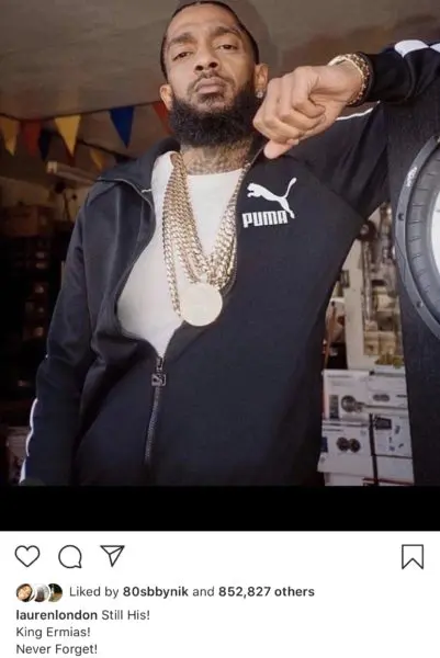 In her message, London says she plans to never allow anyone to disrespect Nipsey or her character.