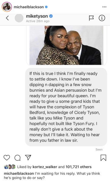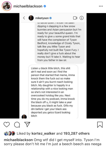 He even went as far as sending a direct message to Mike Tyson with more shenanigans! Of course, he posted the back and forth for his 4 million IG followers to see.