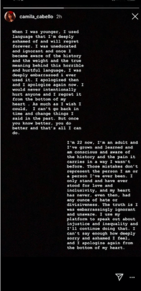 It was previously reported that screenshots of Camilla Cabello using racist phrases and posting racist GIFs from her Tumblr account were shared on an anonymous Twitter profile. Her posts date back to 2012 and 2013 when she was around 14-years-old. She later issued an apology in December, shortly after the posts made headlines.