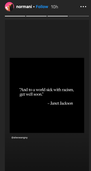 She also shared a cryptic quote about racism on her Instagram story.