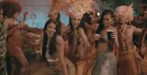 Jhené makes her way through the luau-themed party, without a care in the world flirting with different men. Along with Jhene enjoying the uplifting energy, she features rapper Future, Miguel, plus her sister Mila J who make cameos throughout the fun-themed kickback.