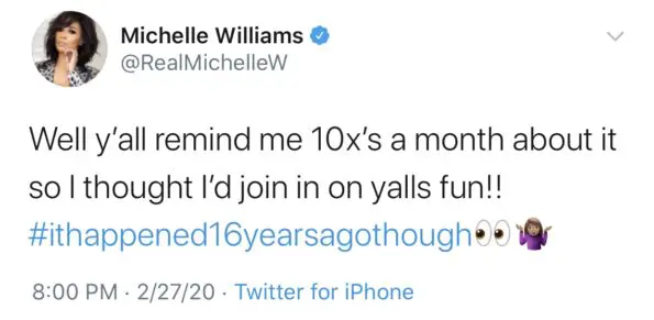 This week, Michelle Williams took to Twitter with a fun fact about one of the most memorable moments of the R&B super girl group classic, “Soldier,” performance. She writes: