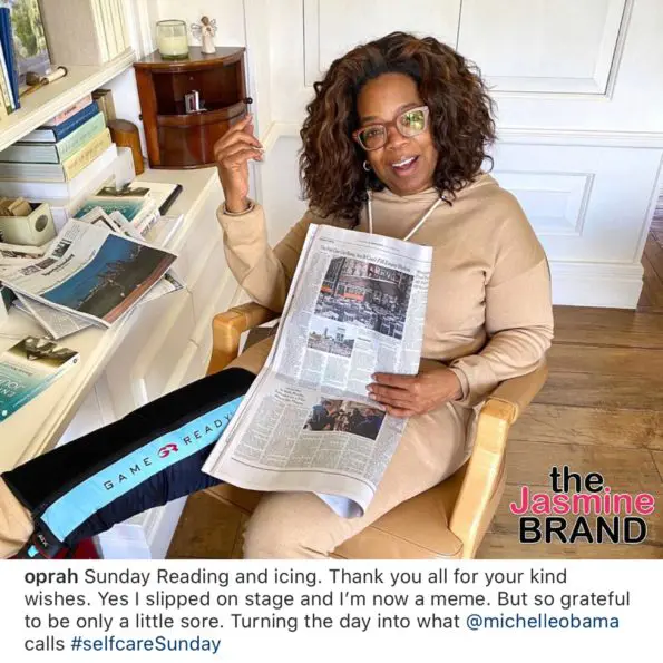 Oprah later gave a quick check-in update on Instagram the following day (Mar. 1st), thanking everyone for the concerns while revealing she’s doing a little recovering with reading and ice.