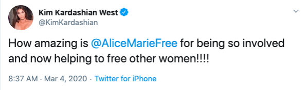 She also acknowledged Alice Johnson, who she helped free back in 2018, for joining the women.