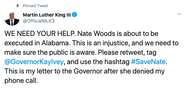 He also headed to Twitter to urge his followers and fellow activists to use the hashtag #SaveNate to spread awareness and get Governor Ivey’s attention.