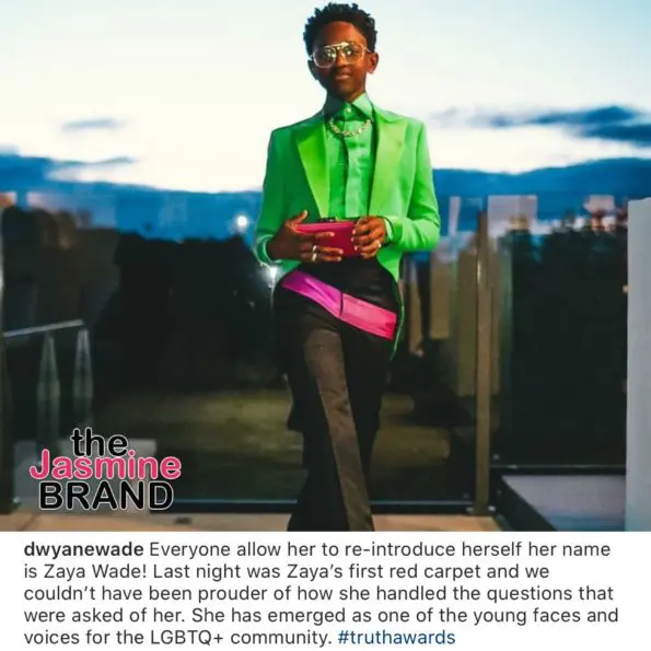 The following day (March 8th), Dwyane shared a photo of Zaya from their award show outing on Instagram, proudly reintroducing his daughter to his over 16 million followers.