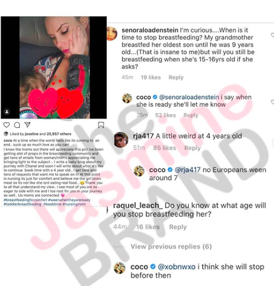 What are your thoughts on Coco’s choice to keep breastfeeding? Tell us in the comments.