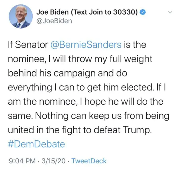 Joe Biden shared a promise last night (March 16th) at the Democratic Debate regarding his potential Vice President.