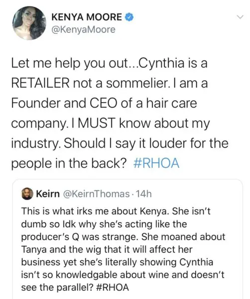 Kenya decided to partake in the girls’ trip to Greece amid filing for divorce from her husband, Marc Daly. During the trip, Kenya teased her friend Cynthia Bailey by taunting her about her wine knowledge in front of the group. A female producer from the show pressed Kenya about the exchange: