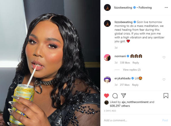Lizzo is a woman of many talents. She’s a singing, dancing, rapping Grammy Award winner – but who knew she could lead a meditation session? The “Truth Hurts” singer lead an Instagram Live session with worried fans in response to the coronavirus. Like many other artists, the global pandemic led her to cancel her anticipated Houston Rodeo appearance. She commented on it, admitting that she, too, was frightened by the health scare: