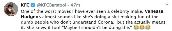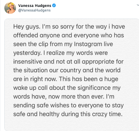 Part 1 #VanessaHudgens makes controversial remarks about #Coronavirus. pic.twitter.com/LabLsDaK8L