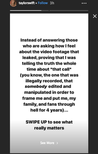 Kim Kardashian West then leaked a video of Kanye and Taylor’s phone call.