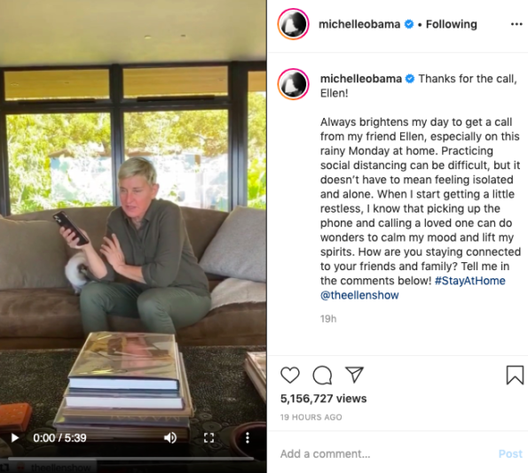 Michelle Obama later posted how much her conversation with Ellen DeGeneres meant.