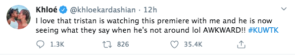 I love that tristan is watching this premiere with me and he is now seeing what they say when he’s not around lol AWKWARD!! #KUWTK
