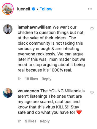 “The millennials are not listening and not taking proper precautions. This is our LIVES we are talking about people especially if you are in a certain age category. I’m bummed but it is what it is…”
