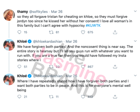 Khloe Kardashian Reacts After Her Family Is Called Out For Forgiving Tristan Thompson After Jordyn Woods Scandal: ‘We’ve Forgiven Both Parties!’