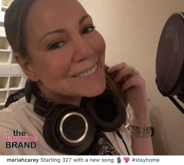 Mariah Carey, who appears to be recording new music, was spotted with a fresh natural face wearing black headphones while standing in front of a microphone in her photo. She reveals on her birthday, new music is on the horizon.