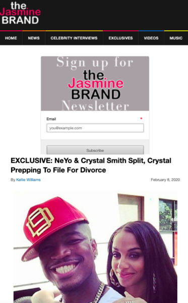 This past February we broke the story that Neyo’s now estranged wife, Crystal Smith, was preparing to divorce the 40-year-old singer.