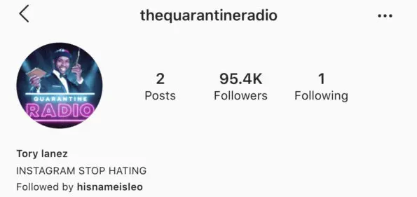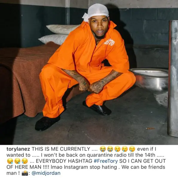 “I won’t be back on quarantine radio till the 14th. Everybody hashtag #FreeTory so you can get me out of here man!!!! Lmao Instagram stop hating. We can be friends man!”