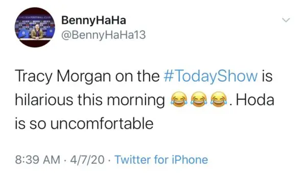 Tracy Morgan said he impregnated his wife 3 times in 3 weeks, wants to get his gorilla tested for ‘rona, has a N95 mask, and said we shouldn’t place blame on Trump for how he’s handled the pandemic. Hoda gracefully got through that interview, but I know she was like… pic.twitter.com/Bcrvrj6WTM