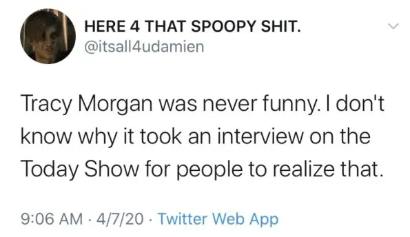 you can hate what Tracy Morgan said, but stop these lies about him never being funny pic.twitter.com/CoSp6P6EAj