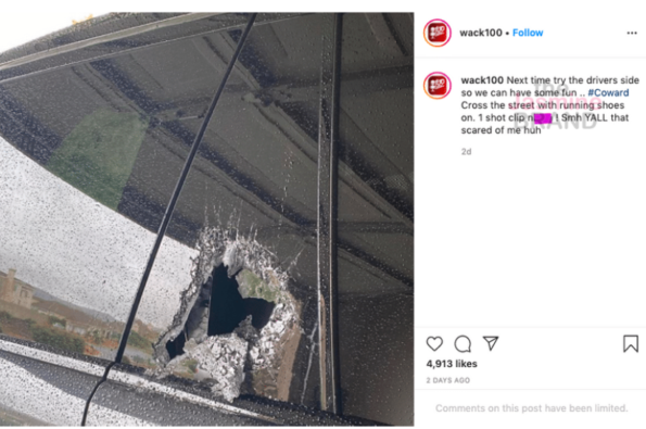 Things appeared to get physical for Wack 100 as he followed up with a post that suggested someone shot at his car.