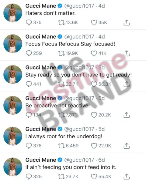 Typically, Gucci shares a much more positive outlook on Twitter prior to his insensitivity tweet from Sunday. In fact, just last week Gucci posted a few motivating tweets that seem polar opposites to coronavirus tweet.