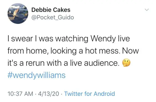 Another social media user noticed “Wendy At Home” was abruptly interrupted by a previously aired episode to navigate away from the live broadcast. The Wendy Show has been doing this since airing from her home, doing a few segments from her home, then switching to a previously taped episode.