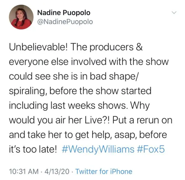 Check out a few of the concerned tweets about today’s Wendy Williams episode below.
