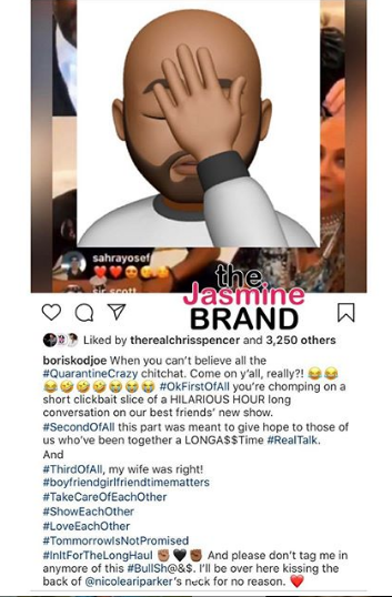 Update #2 (April 14th): Boris Kodjoe has posted a message, responding to what appears to be some of the reactions to his interview with wife Nicole Ari Parker. Posting an image of an emoji with his face covered, he writes: