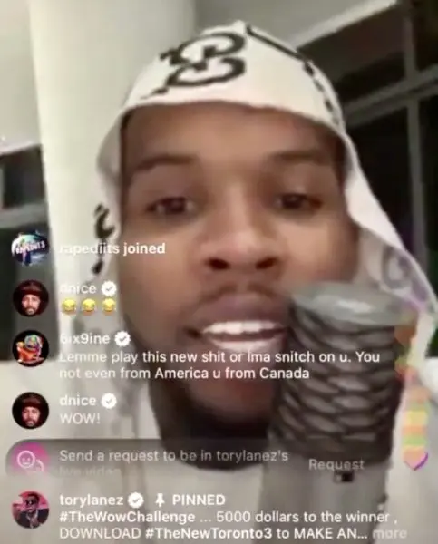 Tekashi 6ix 9ine didn’t shy away from this accusation during his interaction with Tory Lanez. He wrote this comment during the “Quarantine Radio” session:
