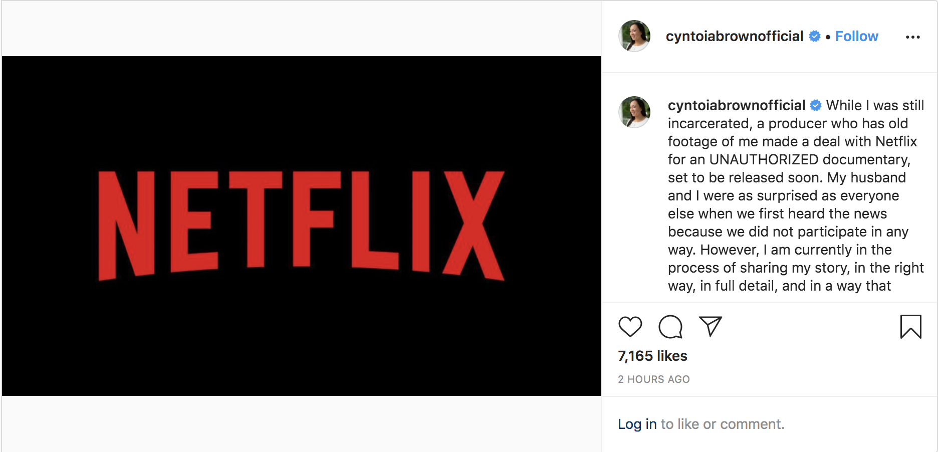 While I was still incarcerated, a producer who has old footage of me made a deal with Netflix for an UNAUTHORIZED documentary, set to be released soon. My husband and I were as surprised as everyone else when we first heard the news because we did not participate in any way.