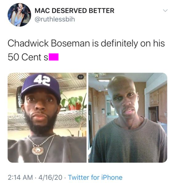 Black Twitter tryna find out why Chadwick Boseman look sick pic.twitter.com/zIVqaIHBzz