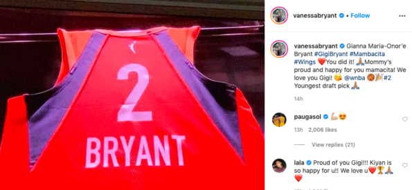 The honors don’t stop there. In a recent post to her Instagram followers, Vanessa Bryant revealed that her late daughter along with her teammates Alyssa Altobelli and Peyton Chester will be honorary draft picks in the 2020 WNBA Draft on April 17th. Vanessa captioned the post saying,