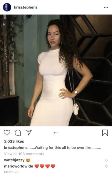 The singer’s latest love interest doesn’t seem to be much of a secret. In the comment section of an Instagram post of one of his performances, singer/songwriter Kris Stephens – known for her feature on “Memories Back Then” by T.I., B.O.B., and Kendrick Lamar – wrote:
