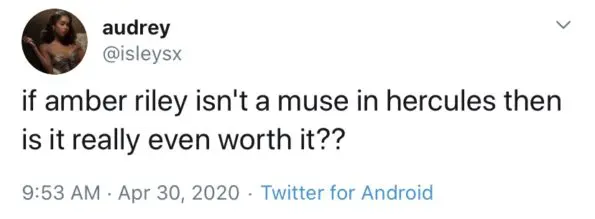 To make it 100% clear if Amber Riley is not a Muse in Hercules…?WE AIN'T WATCHING!! pic.twitter.com/QS8EcA5lyR