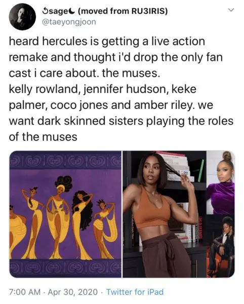 Since rumblings of he Hercules remake have surfaced, singer/actress Amber Riley made it known that she was interested in starring as one of the Muses. She tweeted: