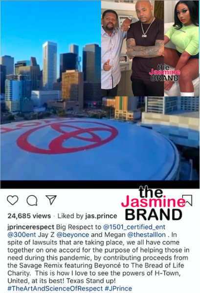 Megan Thee Stallion, who is currently in the middle of a legal battle with her record label got the green light to release her “Savage” remix with Beyonce. In an Instagram post, J. Prince explains that he put creative differences aside, temporarily, for the sake of charity.