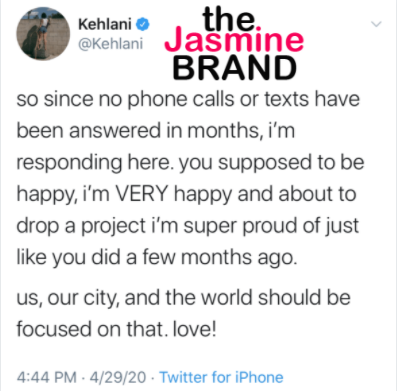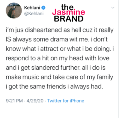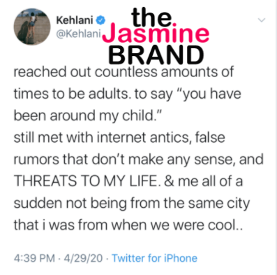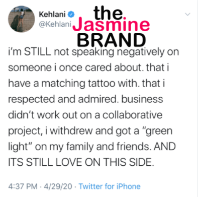 “i’m STILL not speaking negatively on someone i once cared about…business didn’t work out on a collaborative project, i withdrew and got a “green light” on my family and friends. AND ITS STILL LOVE ON THIS SIDE…reached out countless amounts of times to be adults…still met with internet antics, false rumors that don’t make any sense, and THREATS TO MY LIFE. & me all of a sudden not being from the same city that i was from when we were cool…”