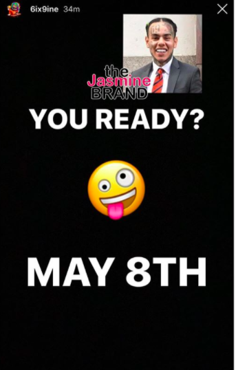 Tekashi 6ix9ine Hints At Releasing New Music On May 8